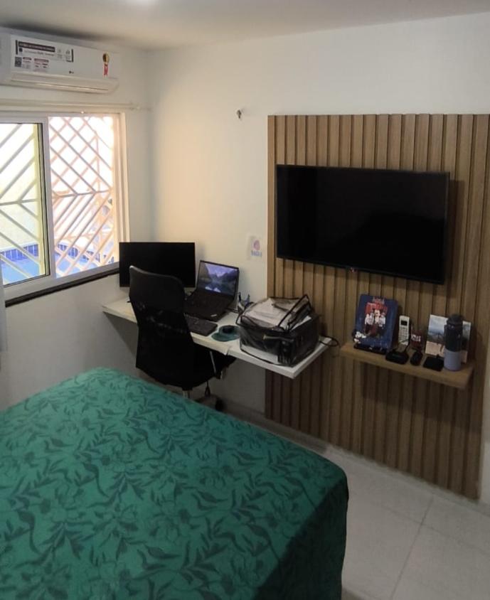 3 quartos, sendo um suite, sala de estar, sala de jantar, cozinha com móveis projetados, deck com churrasqueira, jardim de inverno, toda no porcelanato, quarto suite com móveis projetados e um escritório home office, já com ar condicionado incluso inverter, portão eletrônico e cerca elétrica.