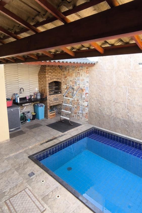 Casa plana com piscina e energia solar em rua privativa com acesso restrito aos moradores.